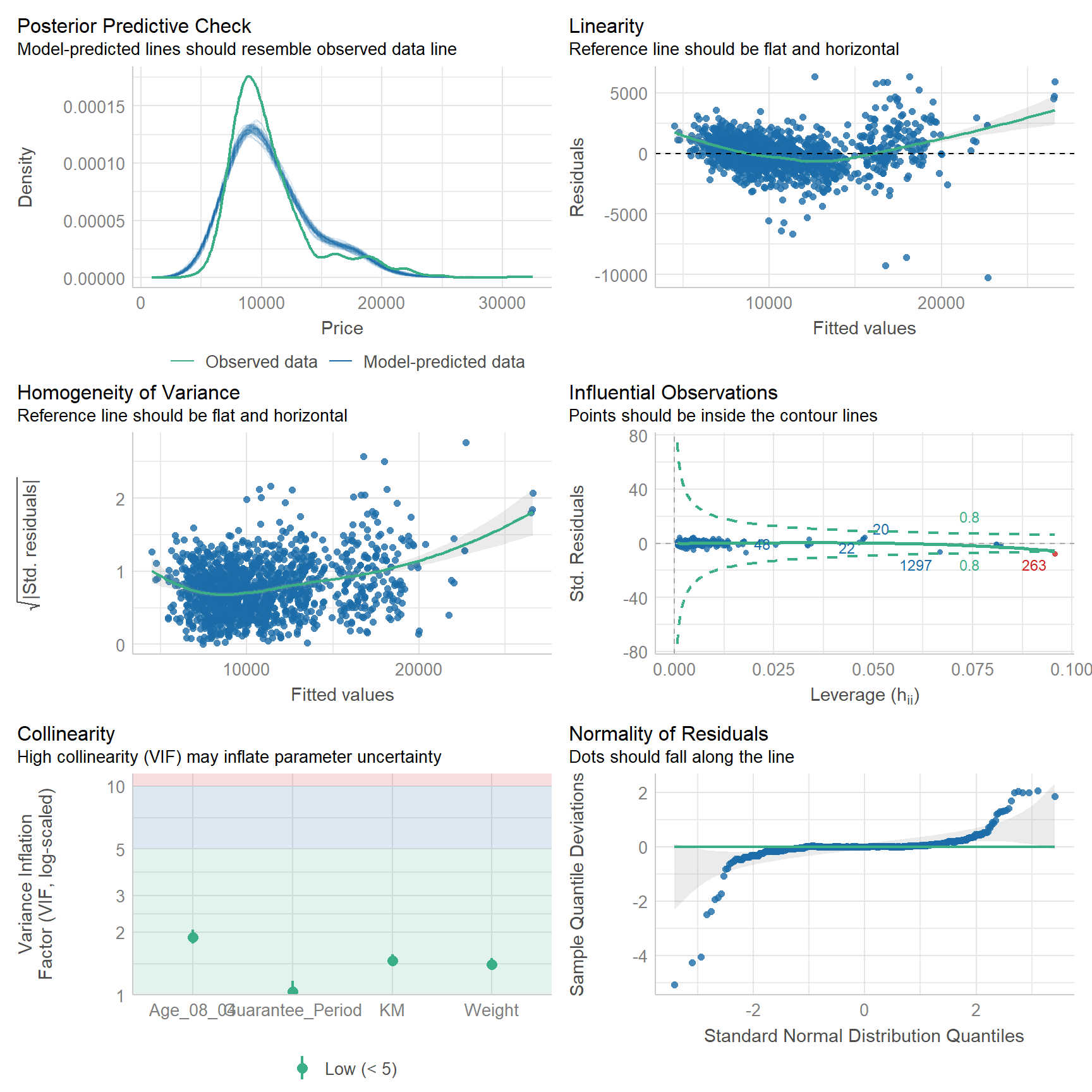 lm(formula = Price ~ Age_08_04 + Mfg_Year + KM + Weight + Guarantee_Period,
