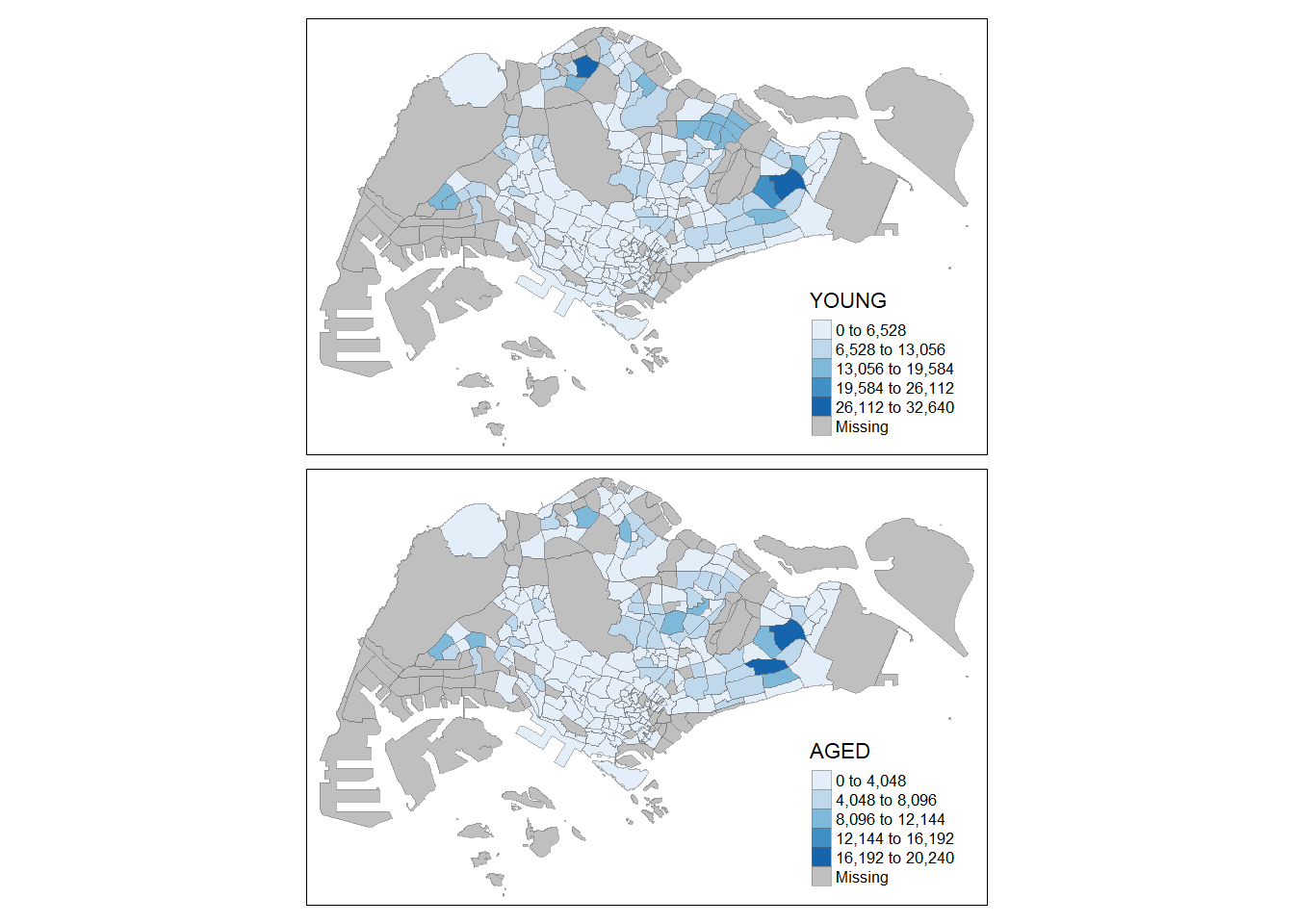 Choropleth mapping involves the symbolisation of enumeration units, such as countries, provinces, states, counties or census units, using area patterns or graduated colours. For example, a social scientist may need to use a choropleth map to portray the spatial distribution of the aged population of Singapore by Master Plan 2014 Subzone Boundary.