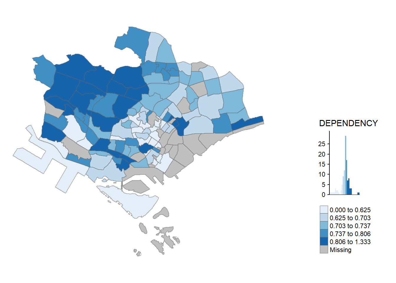 summary(mpsz_pop2020$DEPENDENCY) Min. 1st Qu. Median Mean 3rd Qu. Max. NA's
